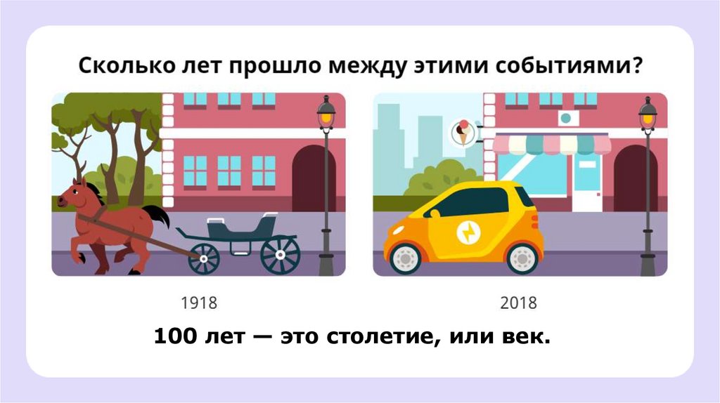 100 лет - это столетие, или век.1000 лет - это 10 веков,или тысячелетие.