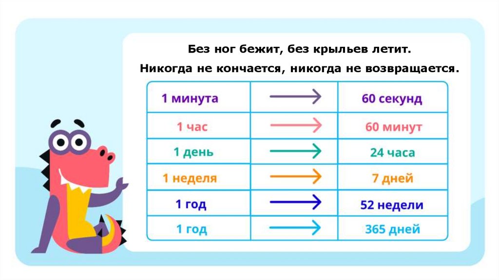 Без ног бежит, без крыльев летит.Никогда не кончается, никогда не возвращается.