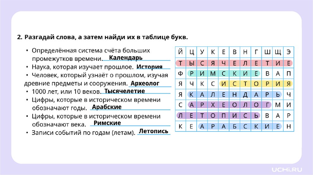 5. В календарях всегда отражались важные события. События, произошедшие много лет назад, называются историческими.