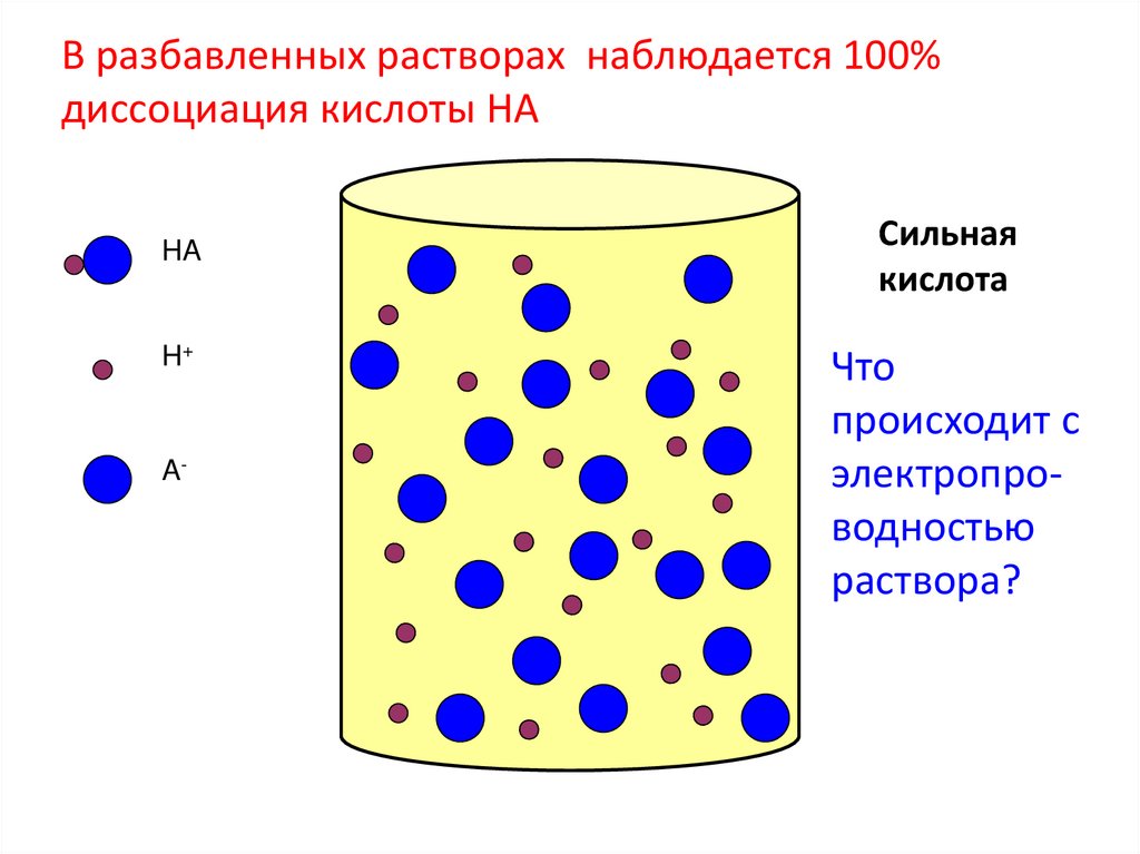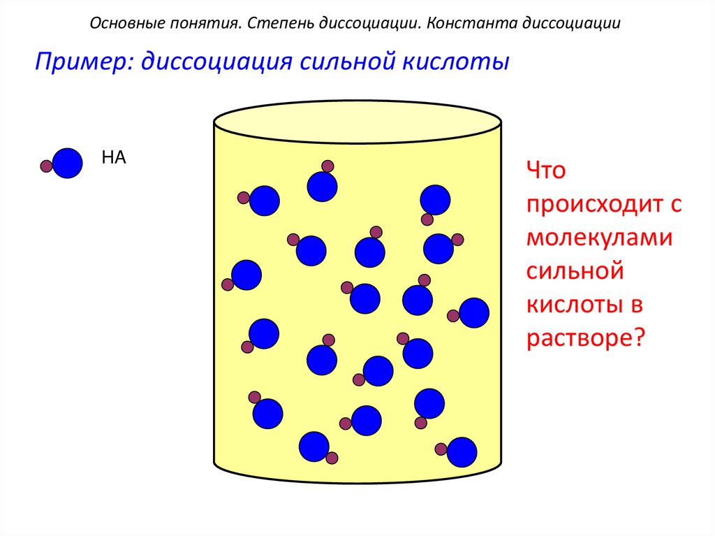 Основные понятия. Степень диссоциации. Константа диссоциацииПример: диссоциация сильной кислоты