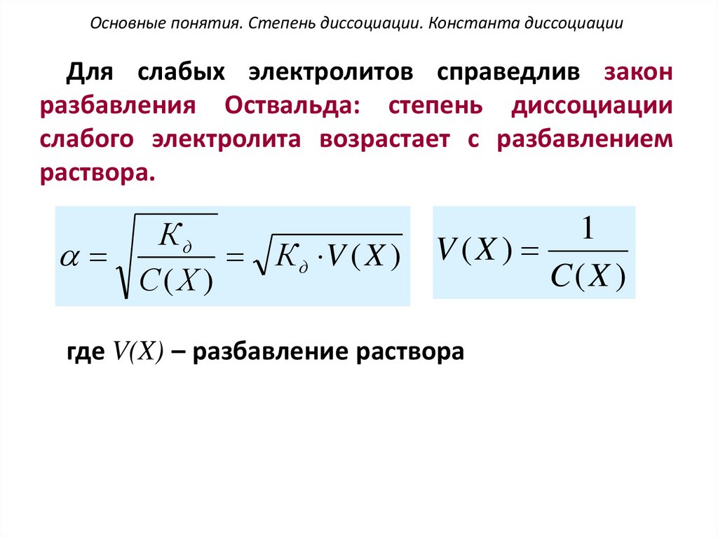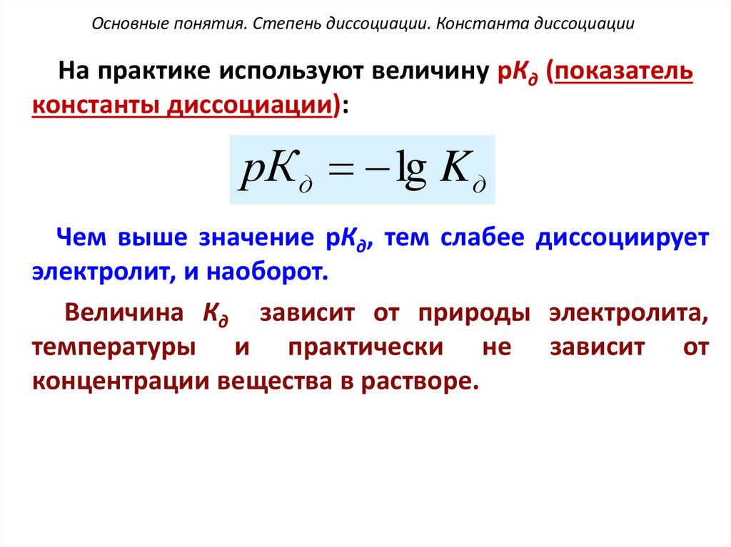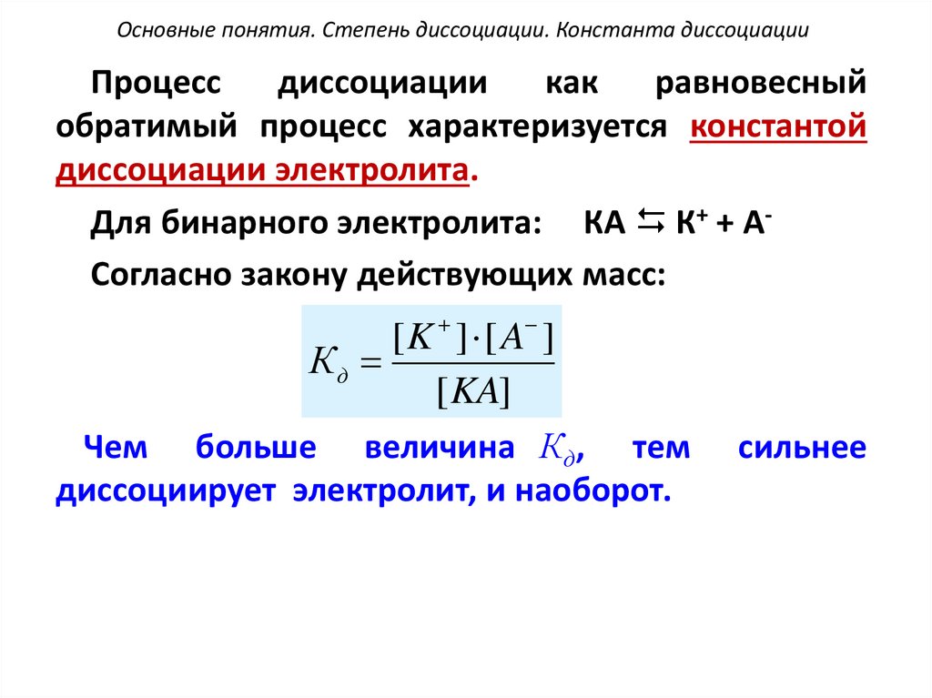 Основные понятия. Степень диссоциации. Константа диссоциацииcathod