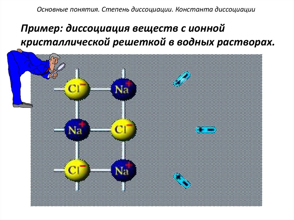 Основные понятия. Степень диссоциации. Константа диссоциацииПример: диссоциация веществ с ионной