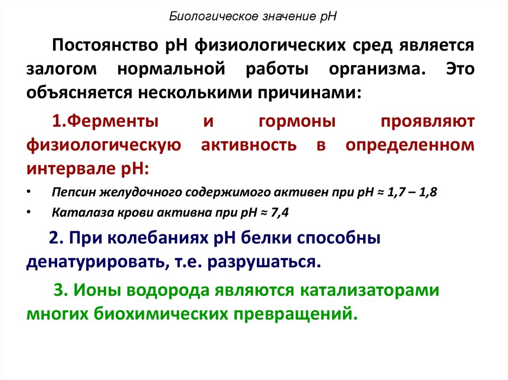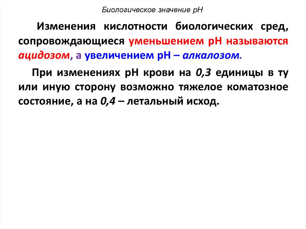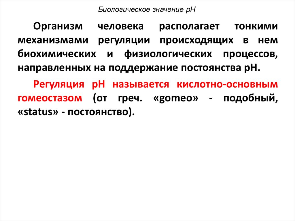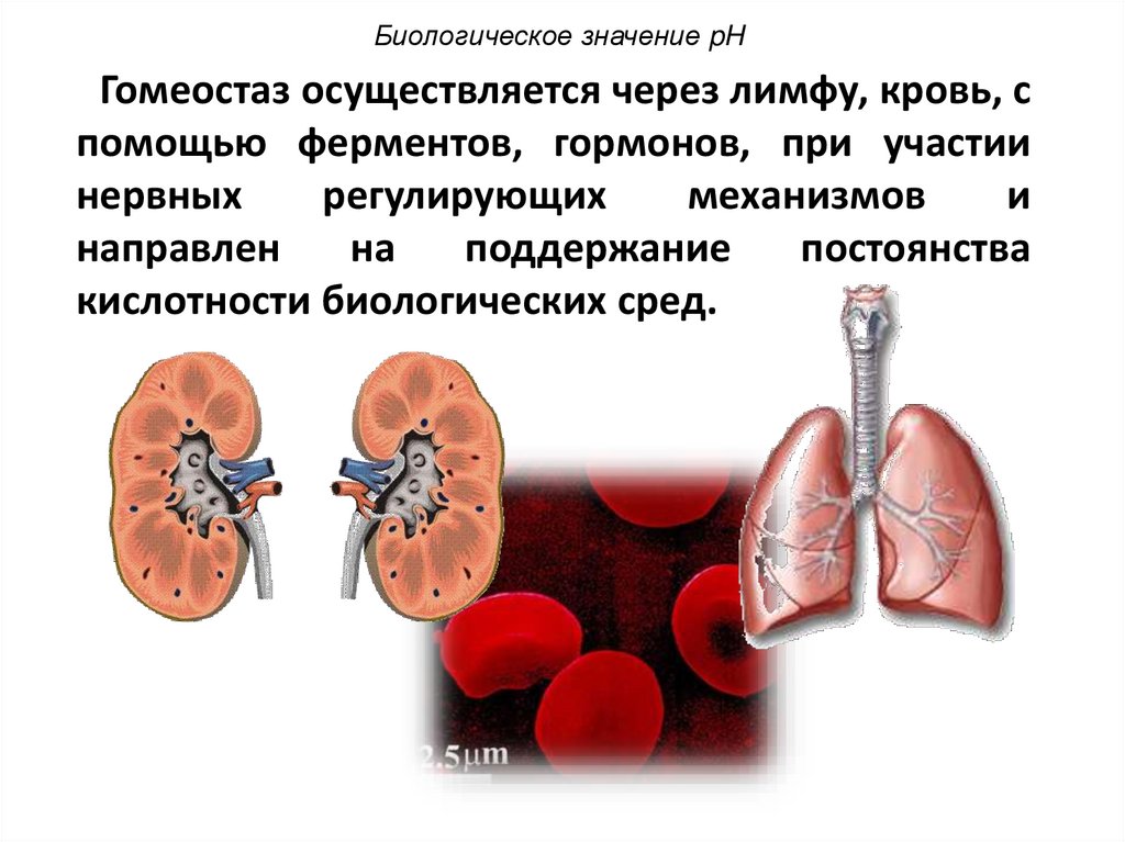 Биологическое значение pHГомеостаз осуществляется через лимфу, кровь, с