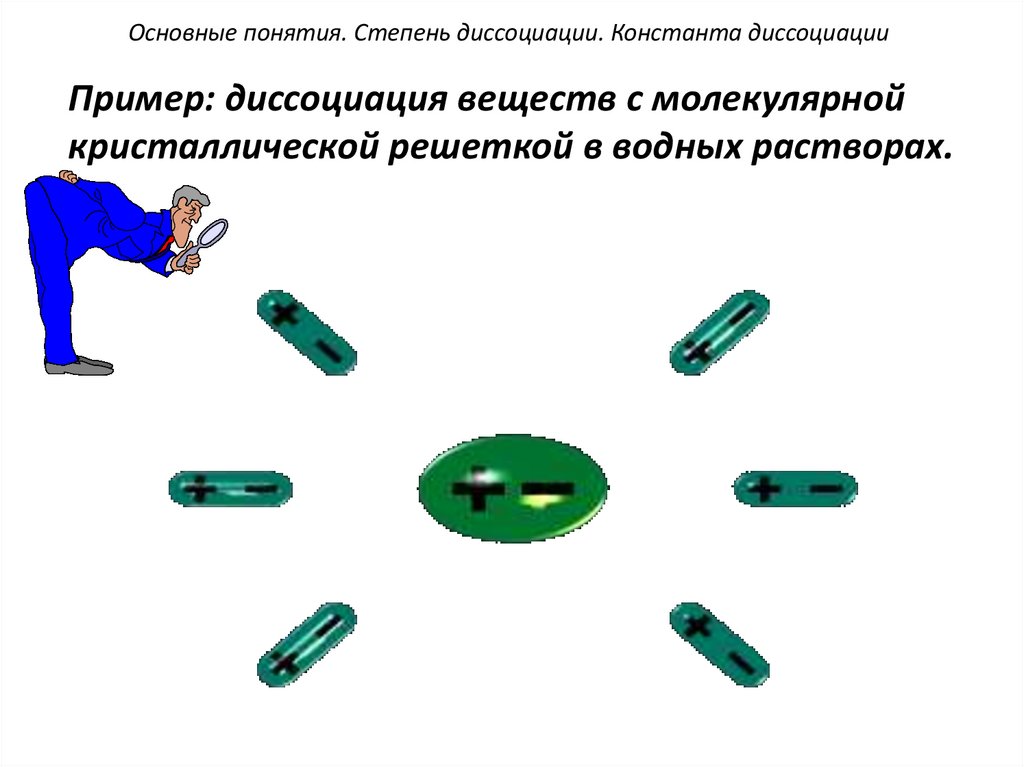 Основные понятия. Степень диссоциации. Константа диссоциацииПример: диссоциация веществ с молекулярной