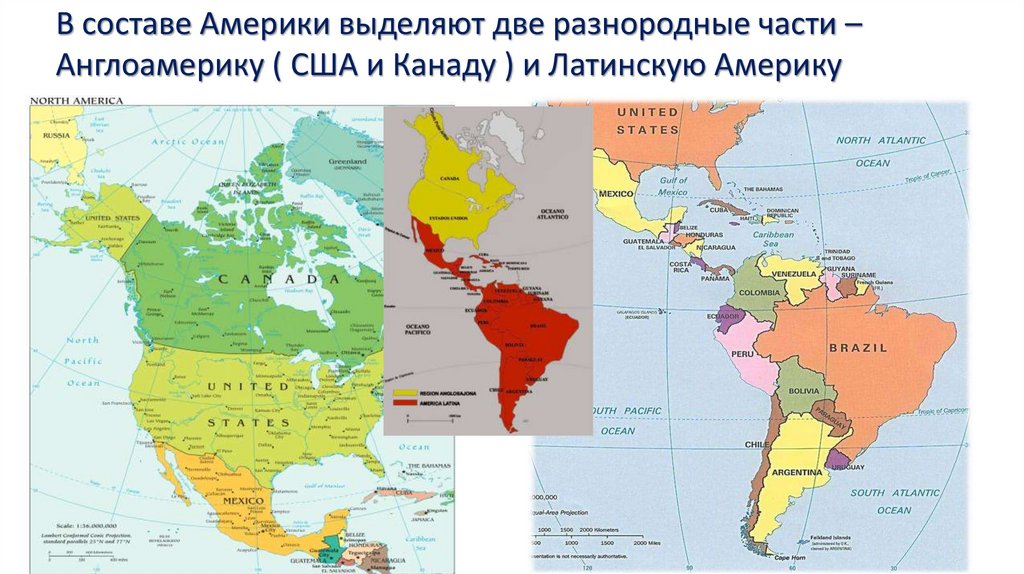 В составе Америки выделяют две разнородные части –Англоамерику ( США и Канаду ) и Латинскую Америку
