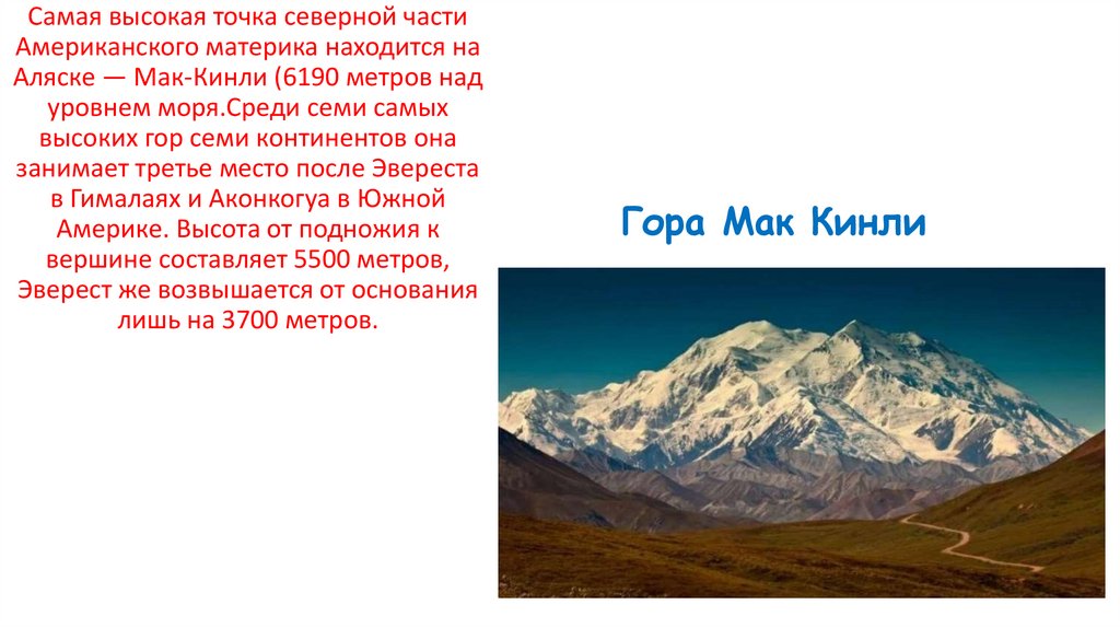Аляске — Мак-Кинли (6190 метров над