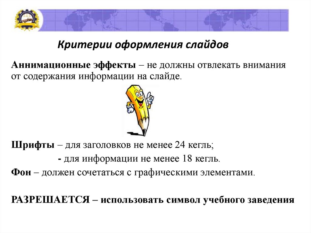 Критерии оформления слайдовАннимационные эффекты – не должны отвлекать внимания
