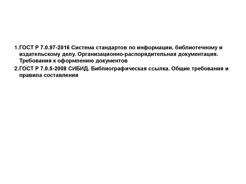 1.ГОСТ Р 7.0.97-2016 Система стандартов по информации, библиотечному ииздательскому делу. Организационно-распорядительная документация.