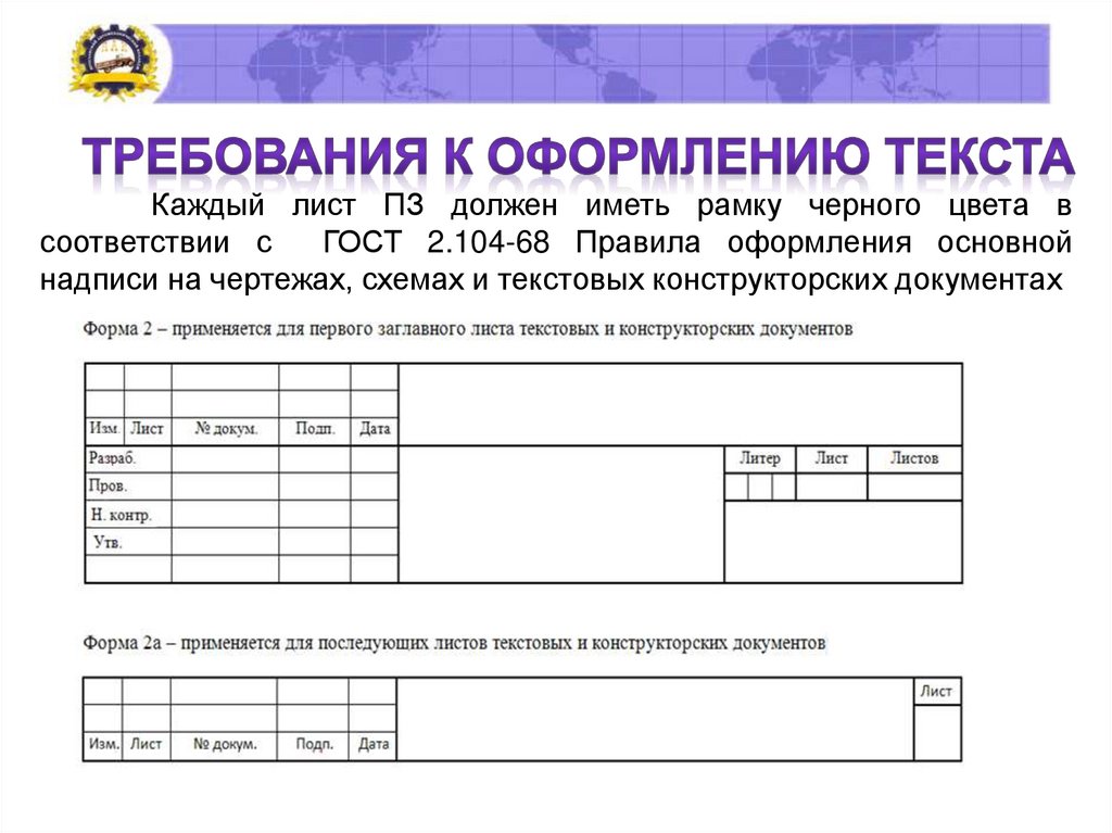 Каждый лист ПЗ должен иметь рамку черного цвета всоответствии с