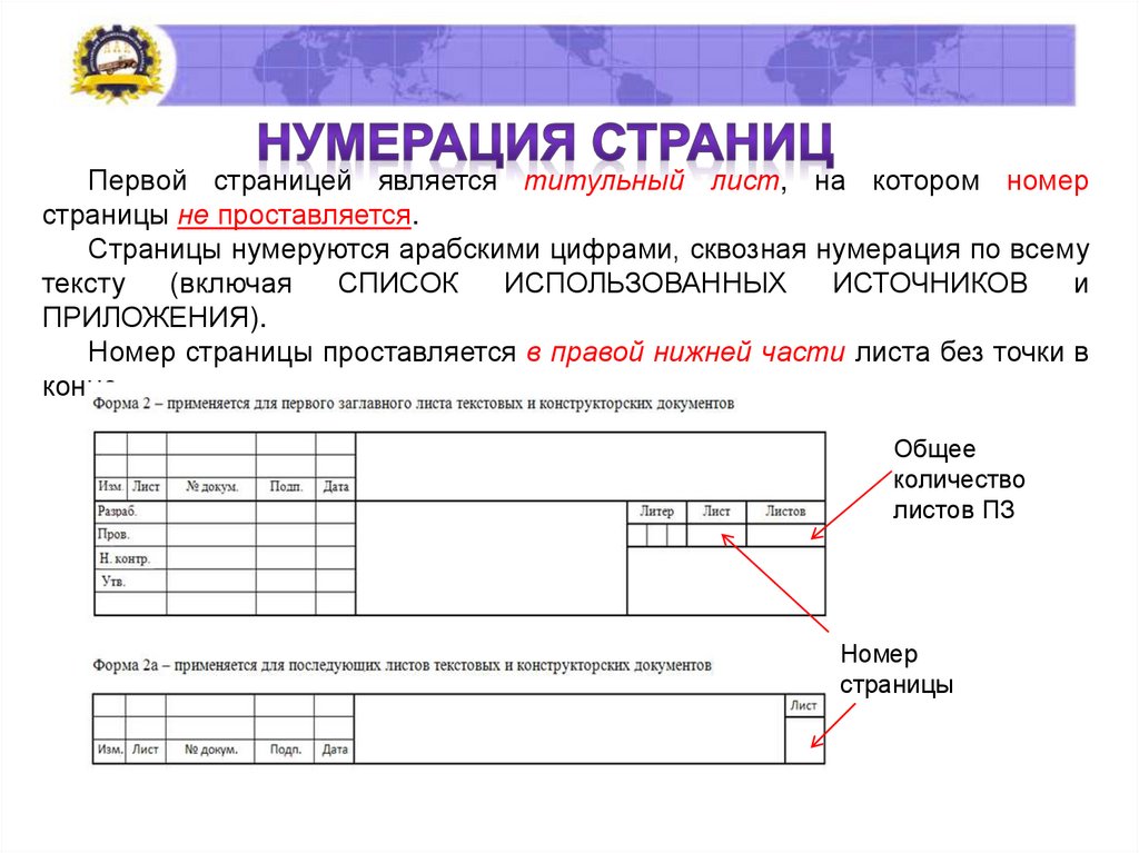 Первой страницей является титульный лист, на котором номерстраницы не проставляется.