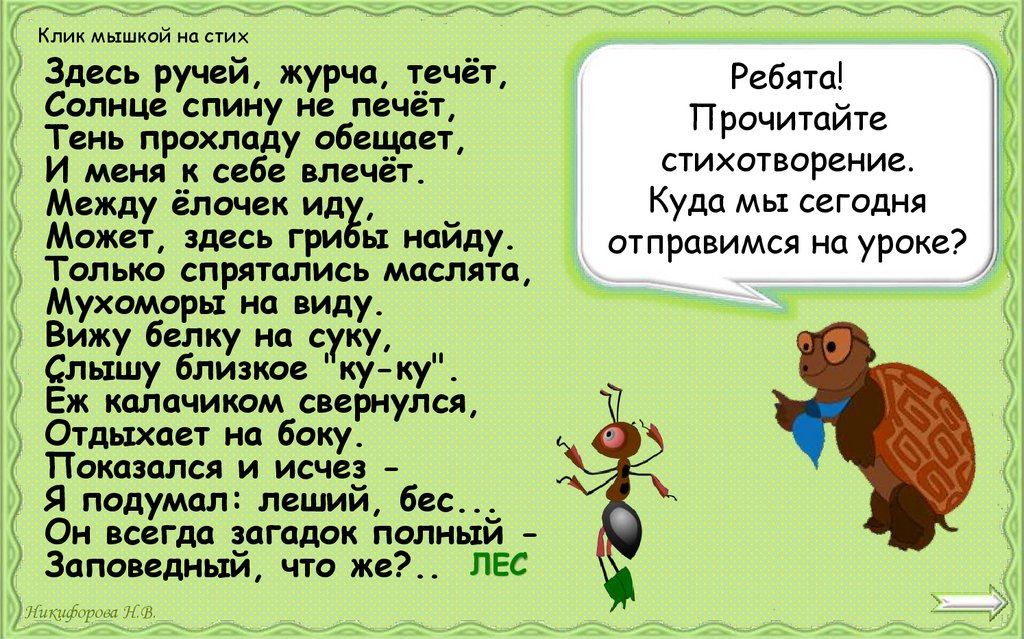 Клик мышкой на стихЗдесь ручей, журча, течёт,