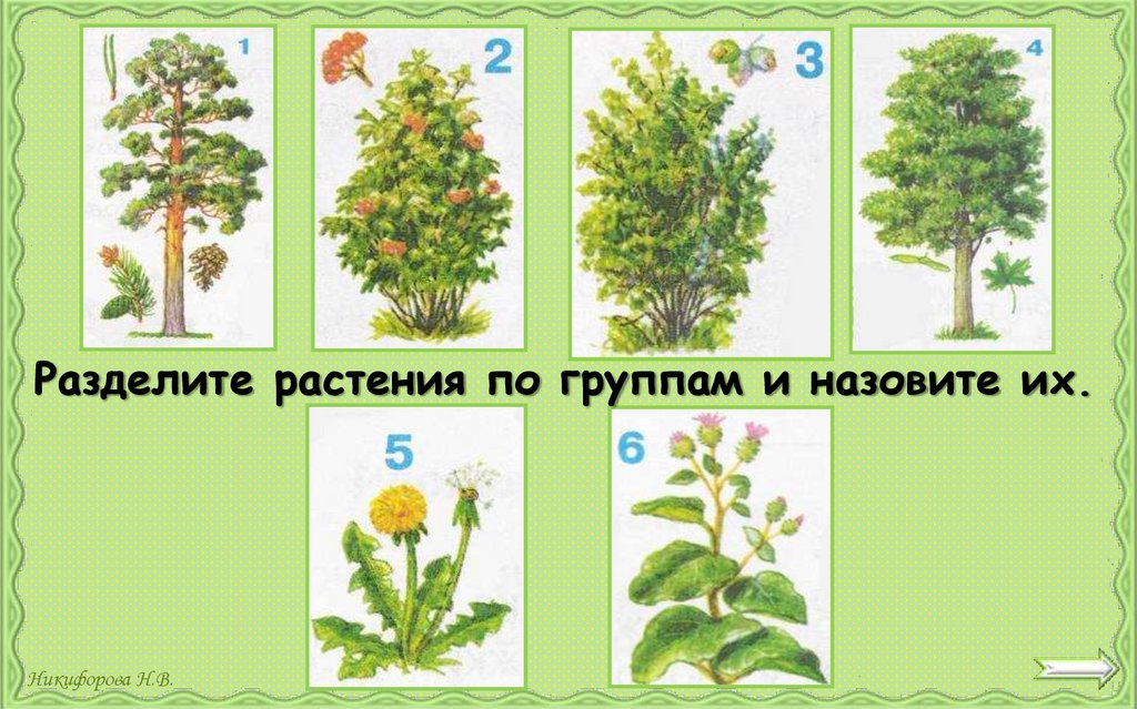 Разделите растения по группам и назовите их.Никифорова Н.В.