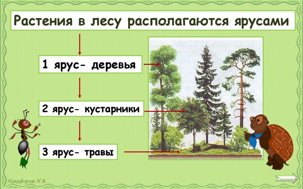 Растения в лесу располагаются ярусами1 ярус- деревья