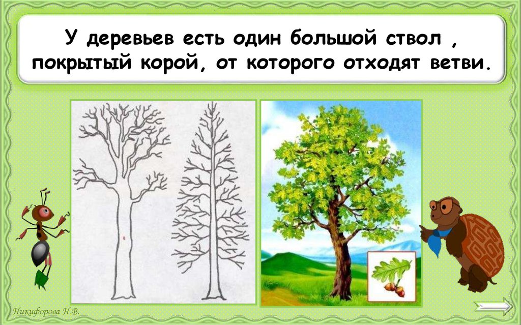 У деревьев есть один большой ствол ,покрытый корой, от которого отходят ветви.