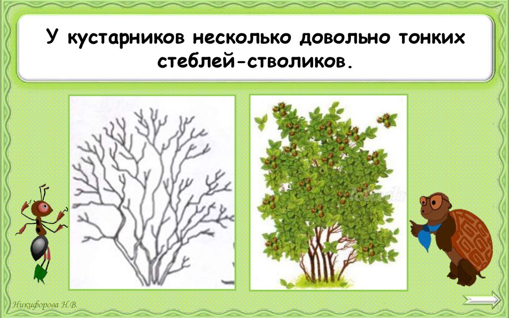 У кустарников несколько довольно тонкихстеблей-стволиков.