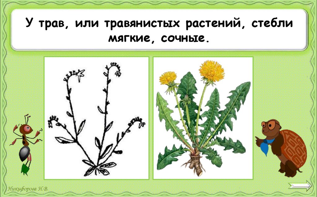 У трав, или травянистых растений, стеблимягкие, сочные.
