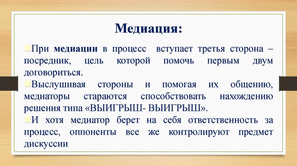 В. Стремление к интеграции интересов всех участников конфликта. В содержании