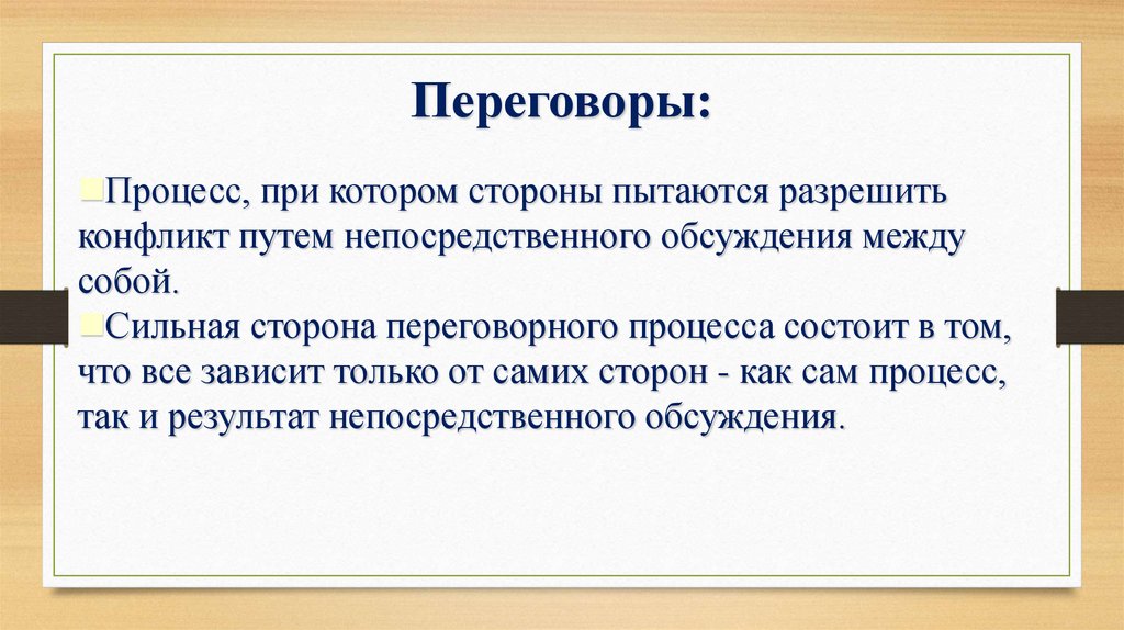 Переговоры:Процесс, при котором стороны пытаются разрешить