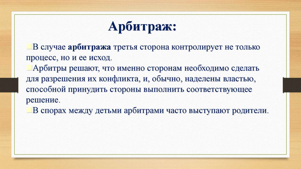 Арбитраж:В случае арбитража третья сторона контролирует не только
