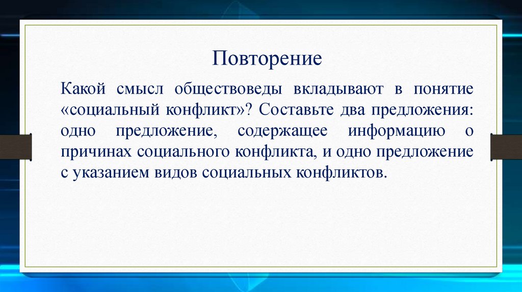ПовторениеКакой смысл обществоведы вкладывают в понятие