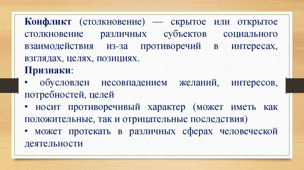 Конфликт (столкновение) — скрытое или открытоестолкновение