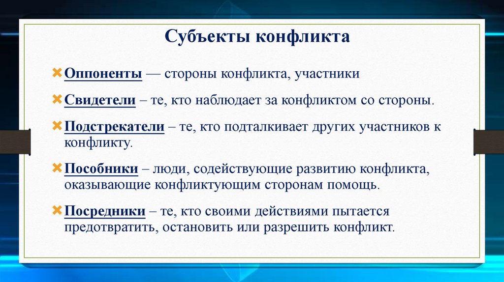 Субъекты конфликтаОппоненты — стороны конфликта, участники