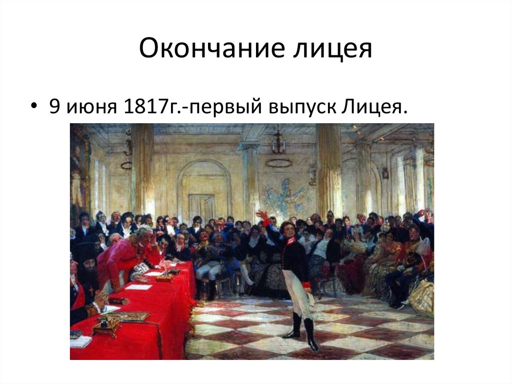 Окончание лицея• 9 июня 1817г.-первый выпуск Лицея.