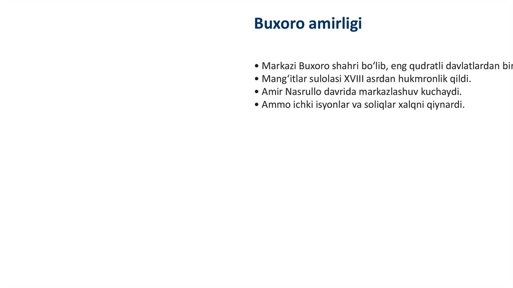 • XVIII asr oxirida Mang‘itlar sulolasi Buxoroda hukmron bo‘l