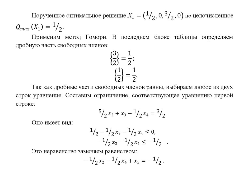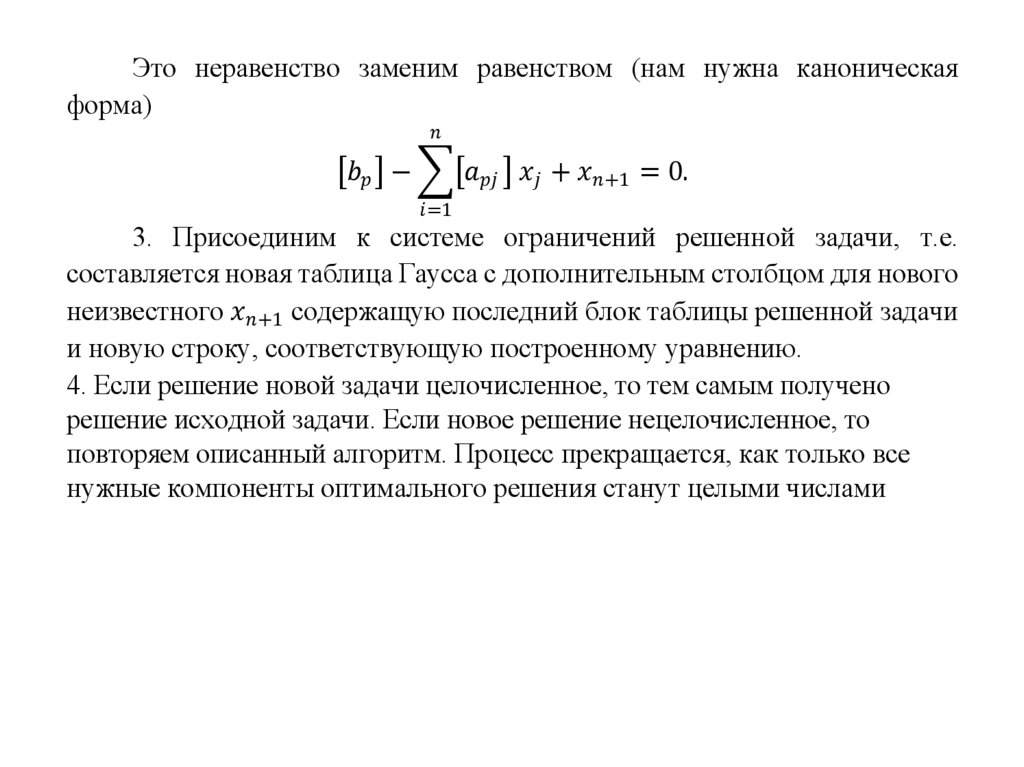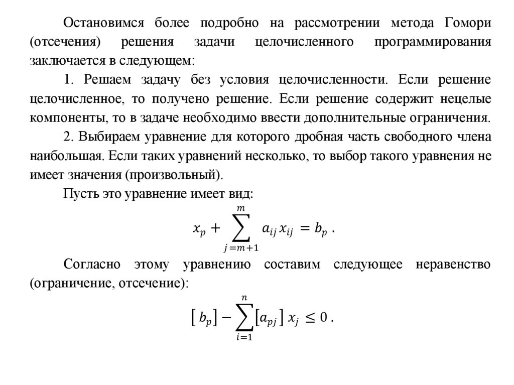 Остановимся более подробно на рассмотрении метода Гомори(отсечения) решения задачи целочисленного программирования