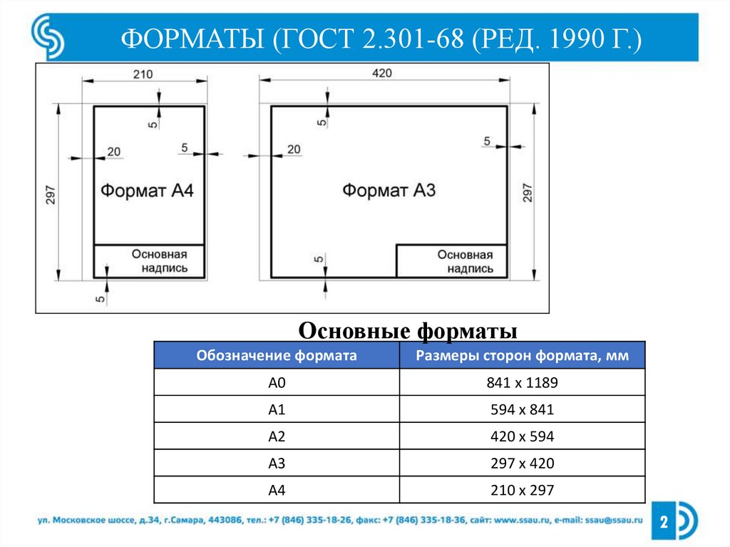 ФОРМАТЫ (ГОСТ 2.301-68 (РЕД. 1990 Г.)Основные форматы