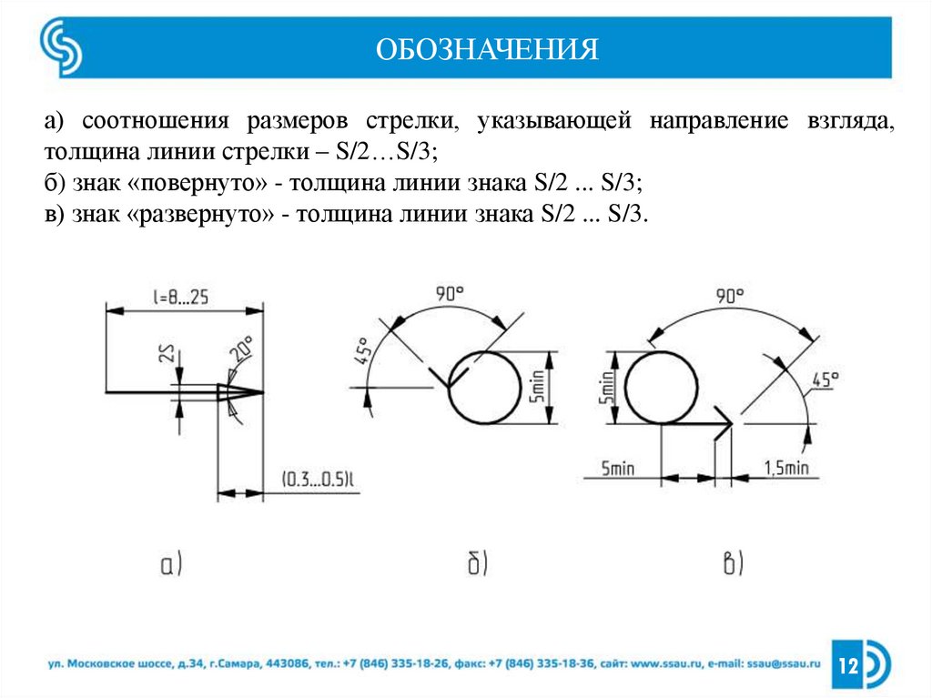 ОБОЗНАЧЕНИЯа) соотношения размеров стрелки, указывающей направление взгляда,