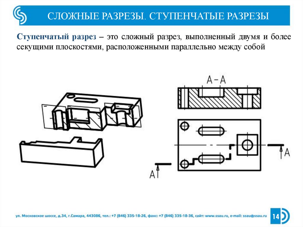 СЛОЖНЫЕ РАЗРЕЗЫ. СТУПЕНЧАТЫЕ РАЗРЕЗЫСтупенчатый разрез – это сложный разрез, выполненный двумя и более