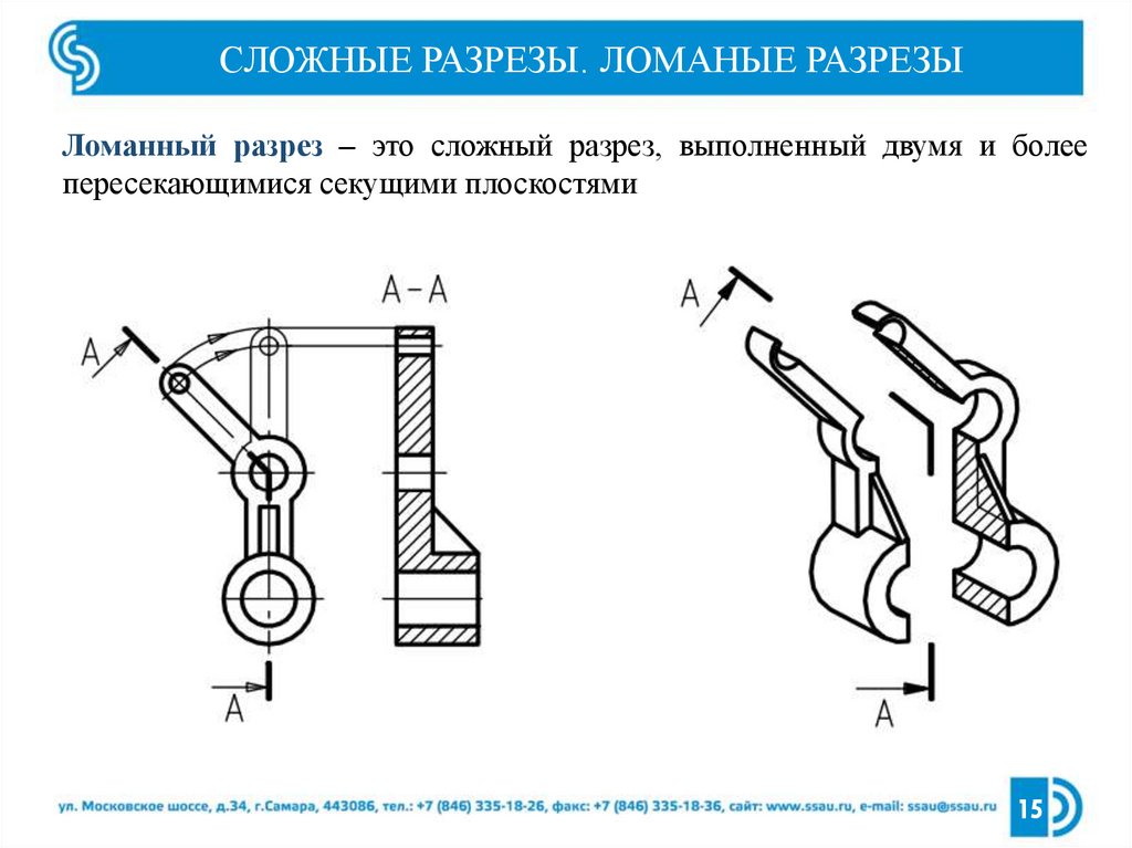 СЛОЖНЫЕ РАЗРЕЗЫ. ЛОМАНЫЕ РАЗРЕЗЫЛоманный разрез – это сложный разрез, выполненный двумя и более