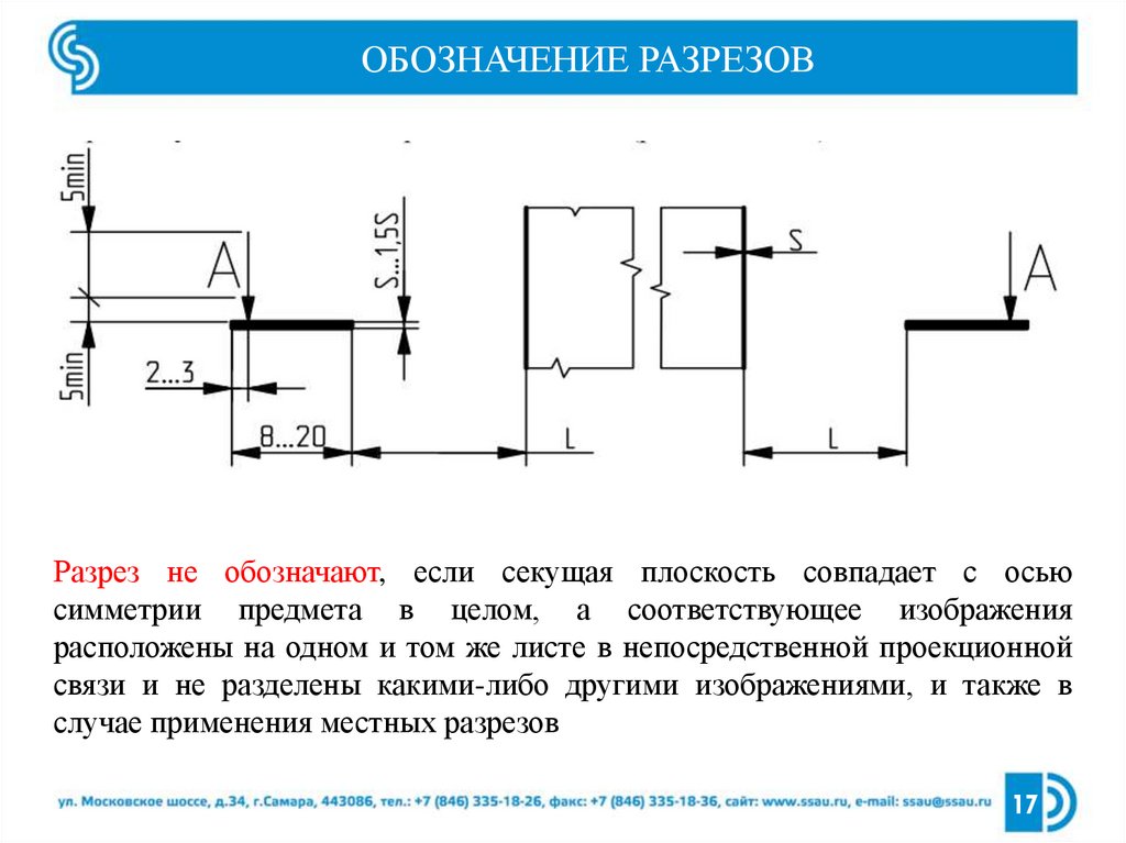 ОБОЗНАЧЕНИЕ РАЗРЕЗОВРазрез не обозначают, если секущая плоскость совпадает с осью