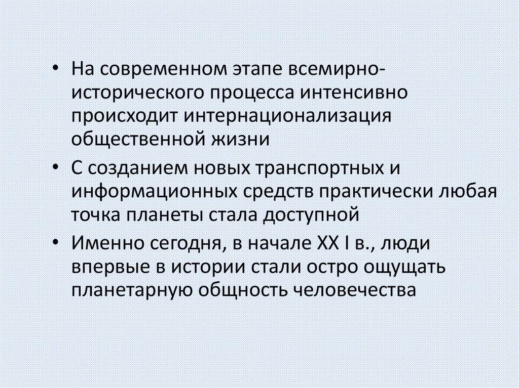 • На современном этапе всемирноисторического процесса интенсивнопроисходит интернационализация