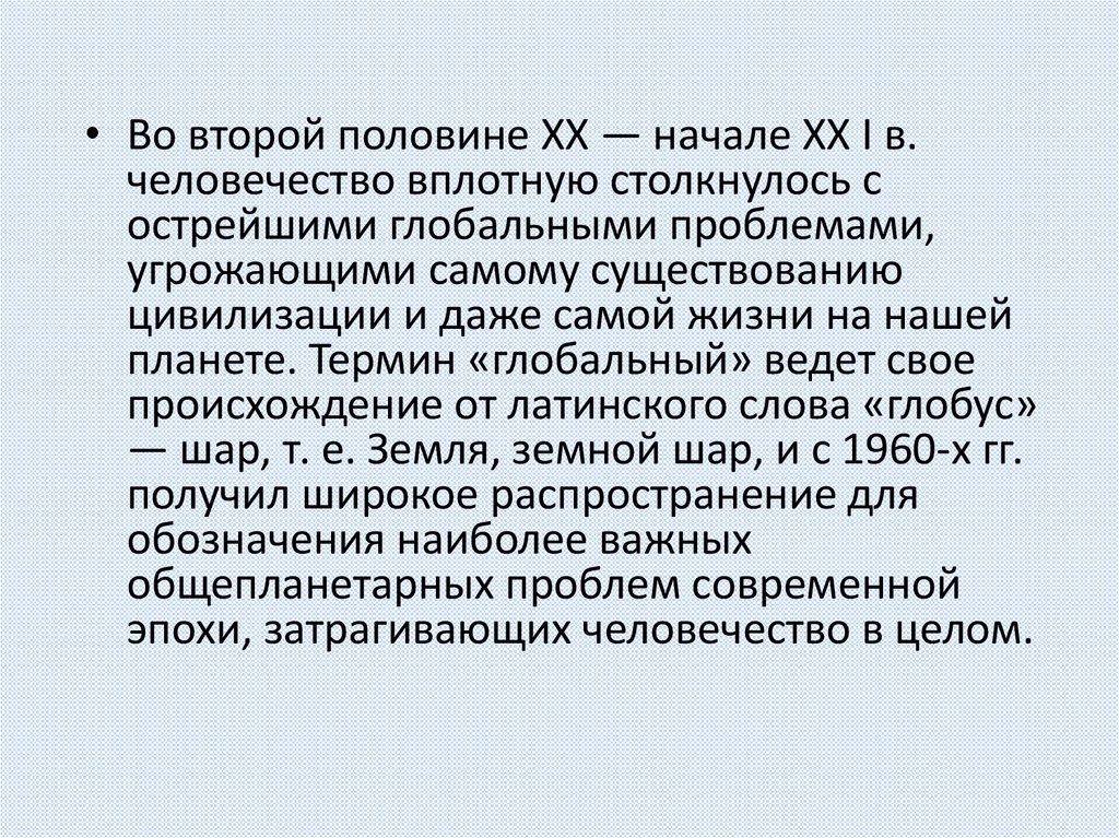 • Во второй половине XX — начале XX I в.человечество вплотную столкнулось с