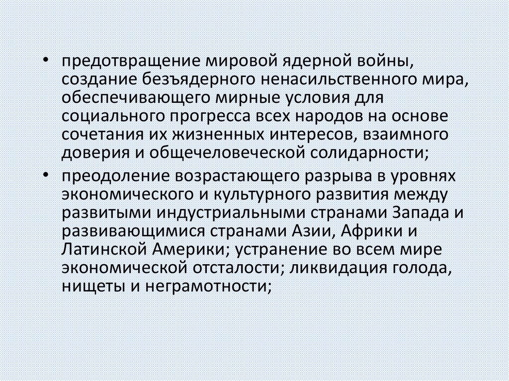 • предотвращение мировой ядерной войны,создание безъядерного ненасильственного мира,