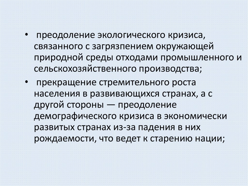 • преодоление экологического кризиса,связанного с загрязпением окружающей