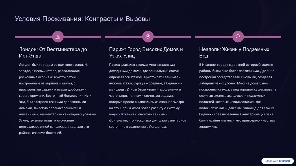Лондон и Неаполь страдали от загрязненных улиц и перенаселения.