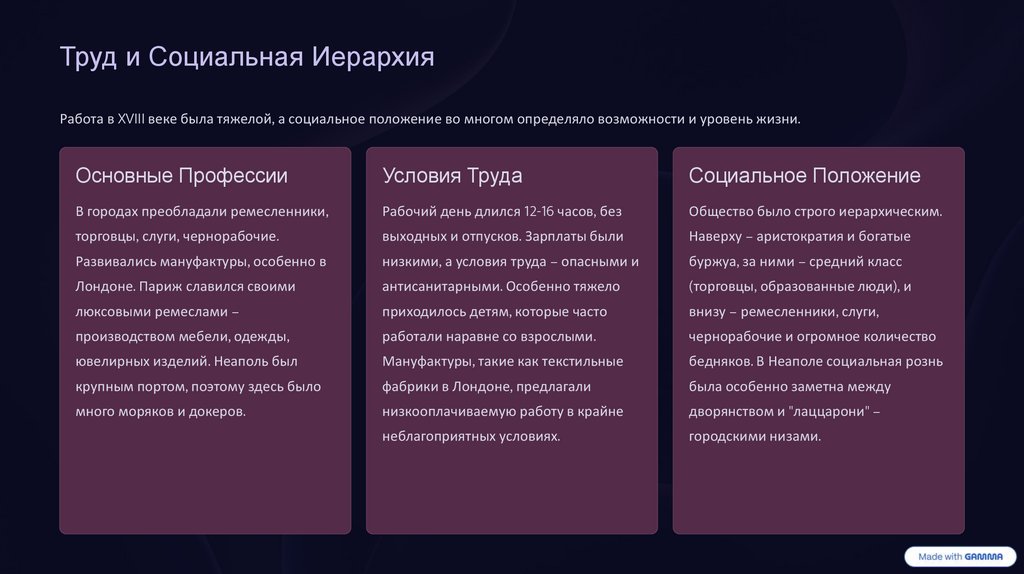 Труд и Социальная ИерархияРабота в XVIII веке была тяжелой, а социальное положение во многом определяло возможности и уровень жизни.