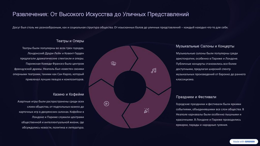 Общее: Театры, музыка и праздники были важной частью досуга для