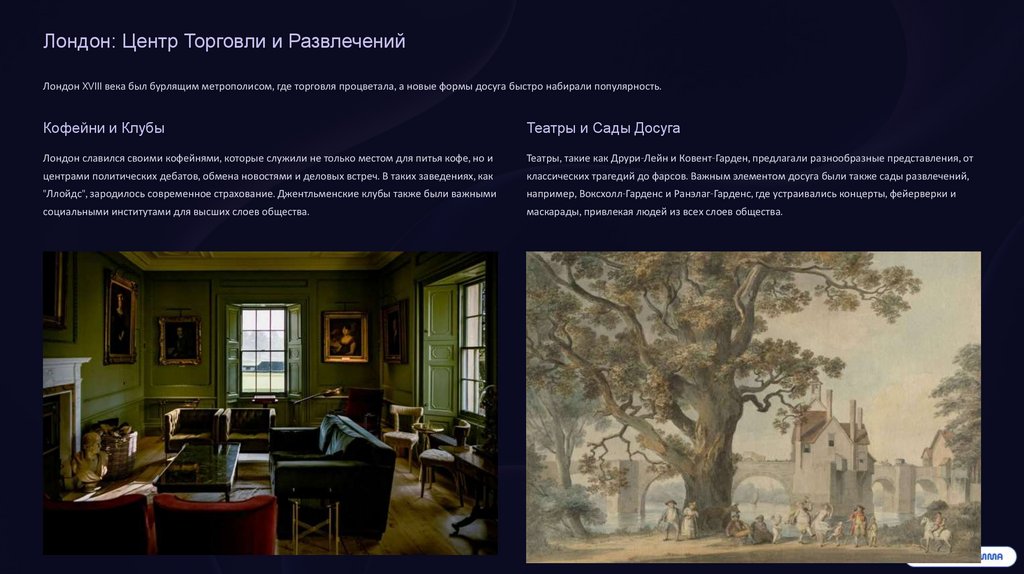 Лондон: Центр Торговли и РазвлеченийЛондон XVIII века был бурлящим метрополисом, где торговля процветала, а новые формы досуга быстро набирали популярность.