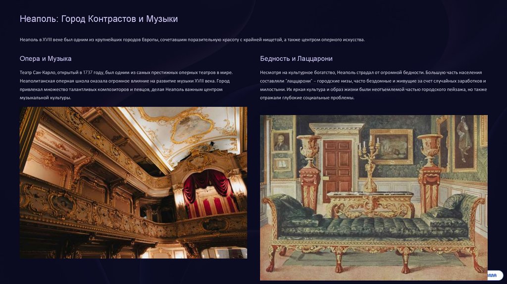 Неаполь: Город Контрастов и МузыкиНеаполь в XVIII веке был одним из крупнейших городов Европы, сочетавшим поразительную красоту с крайней нищетой, а также центром оперного искусства.