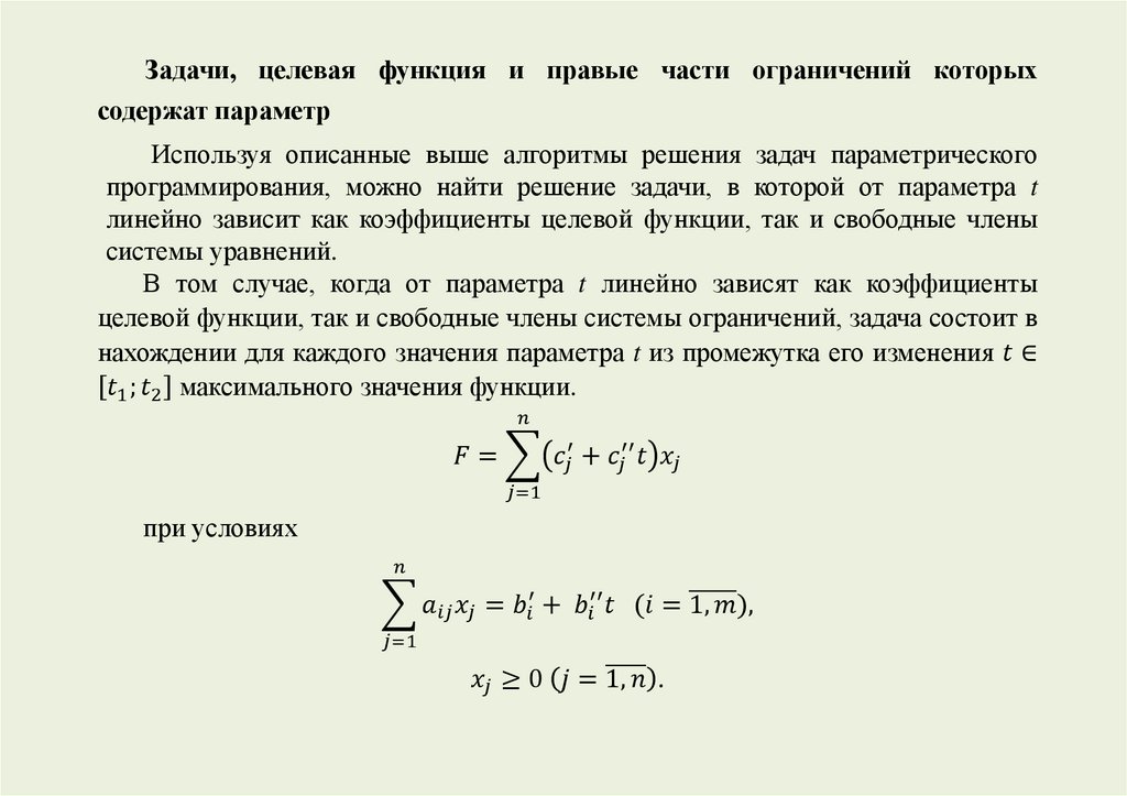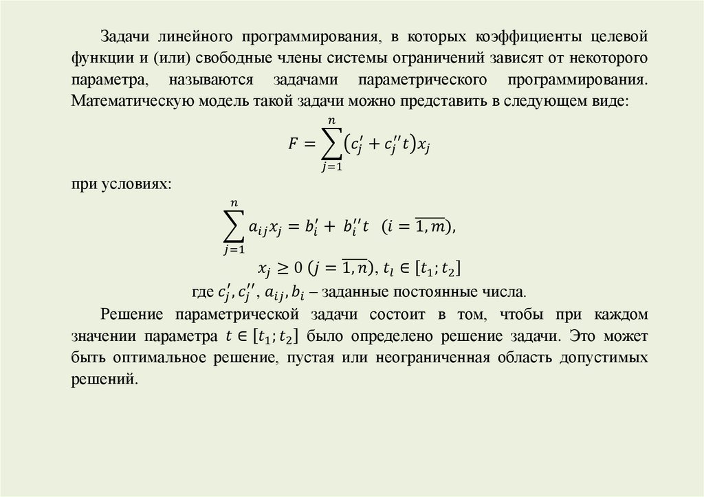 параметра, называются задачами параметрического программирования.