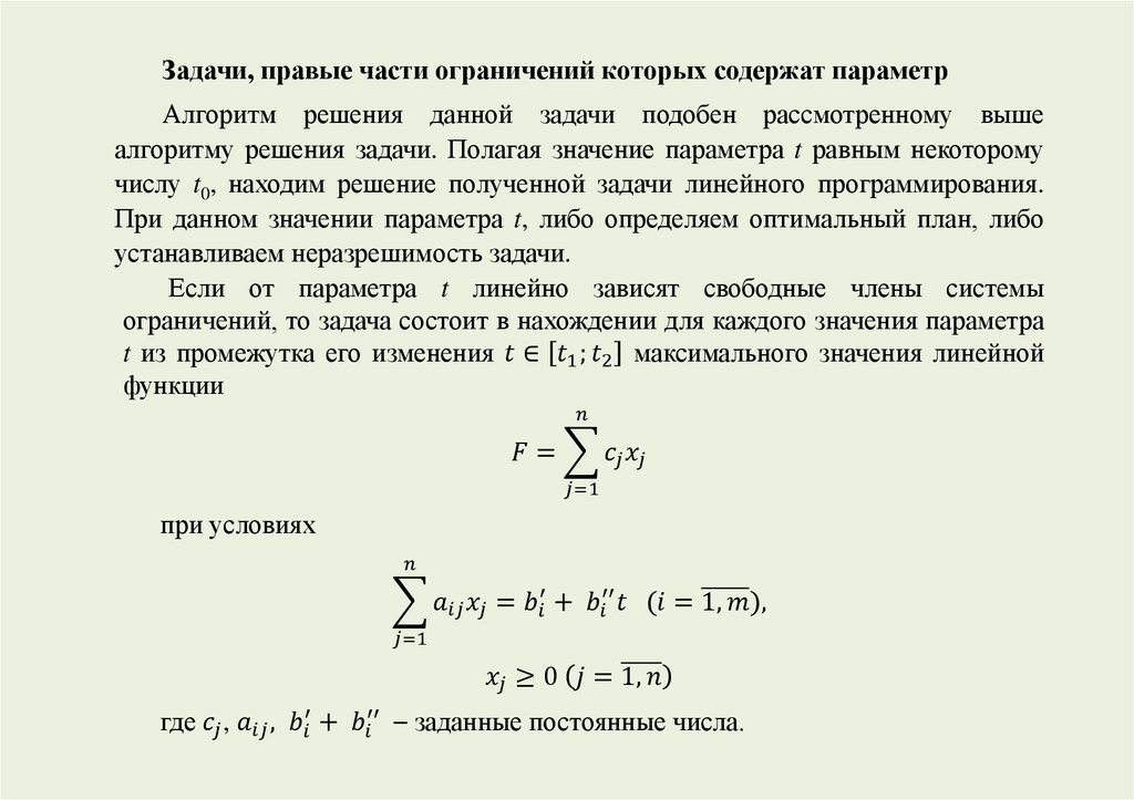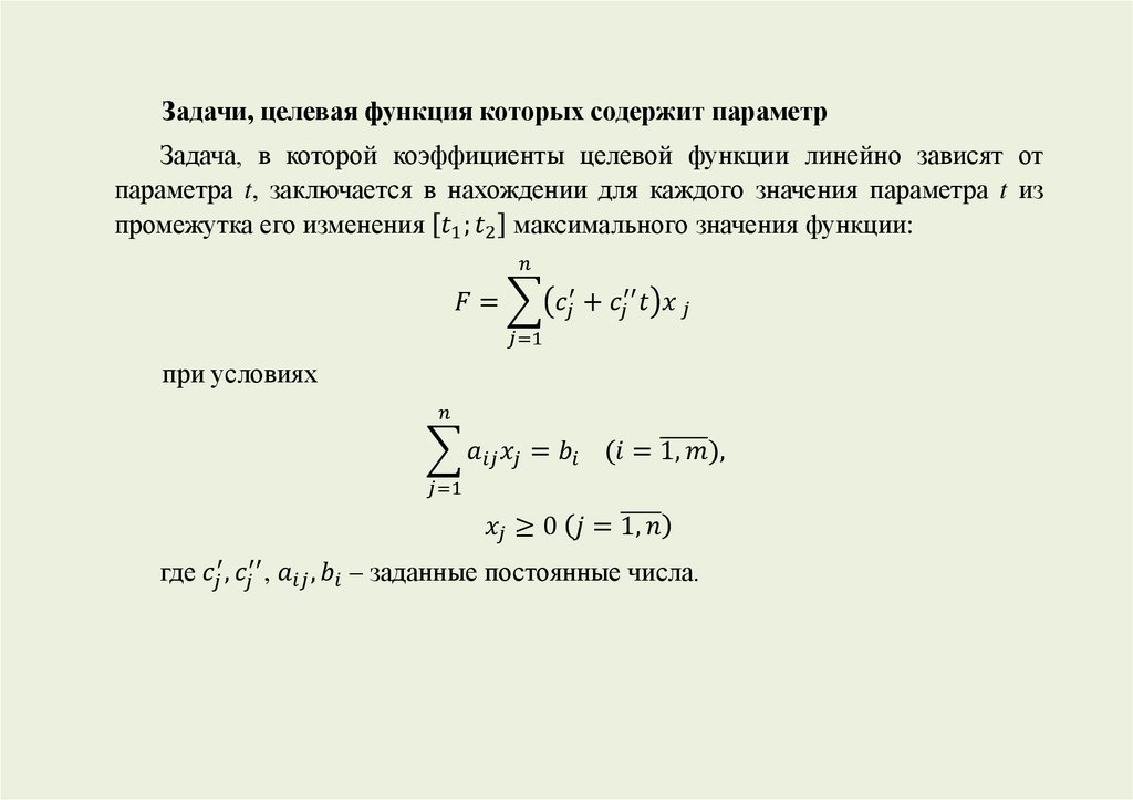 Задачи линейного программирования, в которых коэффициенты целевойфункции и (или) свободные члены системы ограничений зависят от некоторого