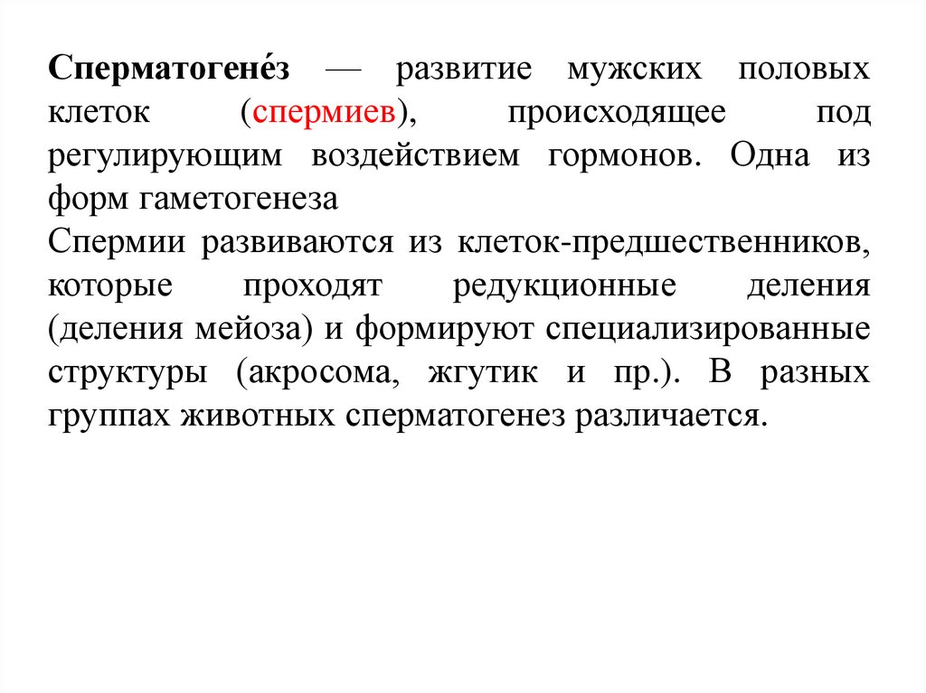 (спермиогенез), а у самок – созреванием яйцеклеток (овогенез).
