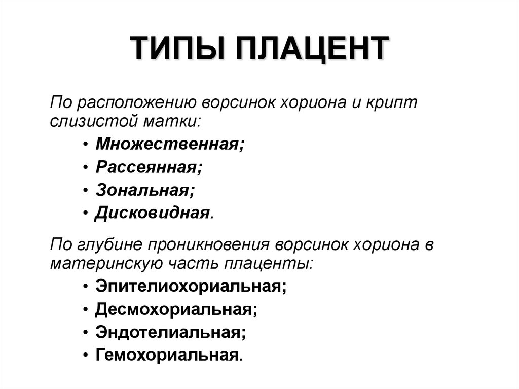 ТИПЫ ПЛАЦЕНТПо расположению ворсинок хориона и крипт