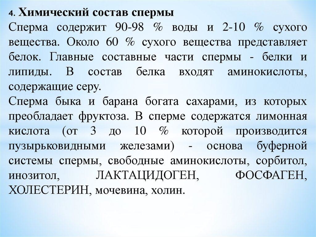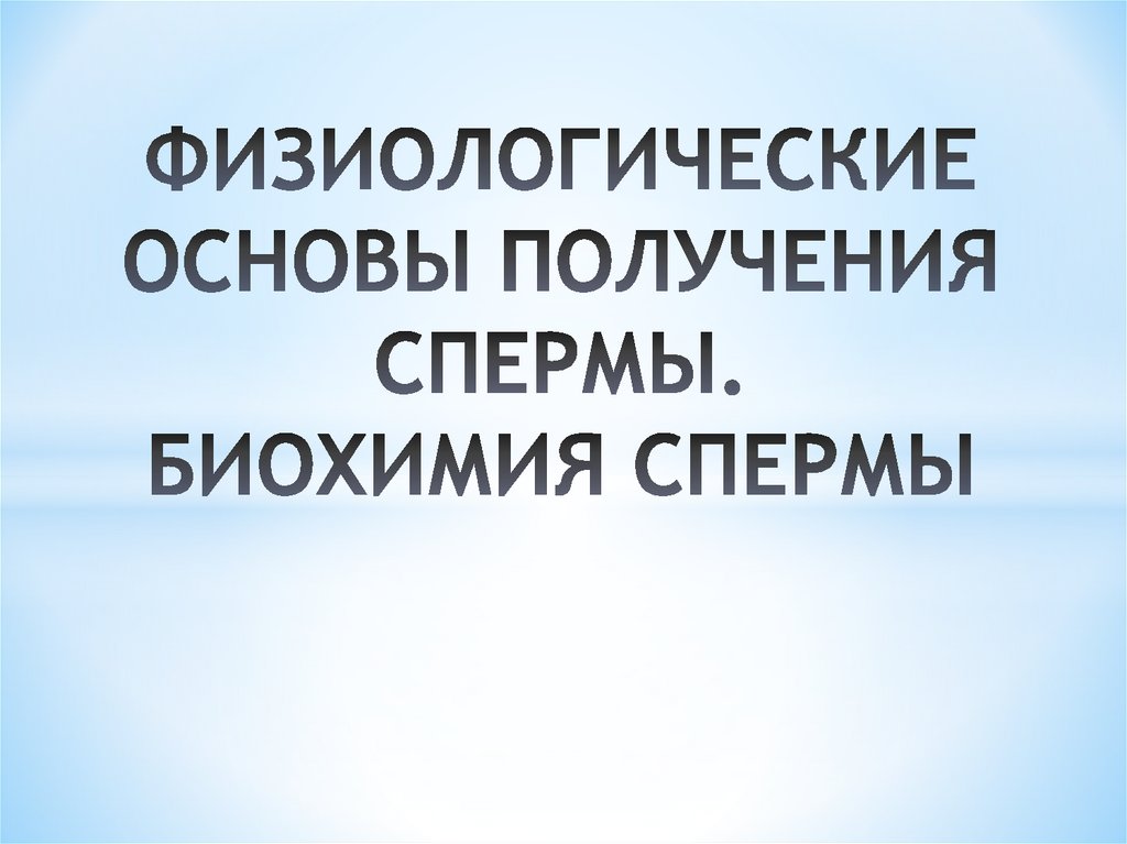 1. ФИЗИОЛОГИЧЕСКИЕ ОСНОВЫ ПОЛУЧЕНИЯ СПЕРМЫ. БИОХИМИЯ СПЕРМЫ