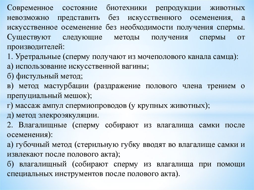 Современное состояние биотехники репродукции животныхневозможно представить без искусственного осеменения, а