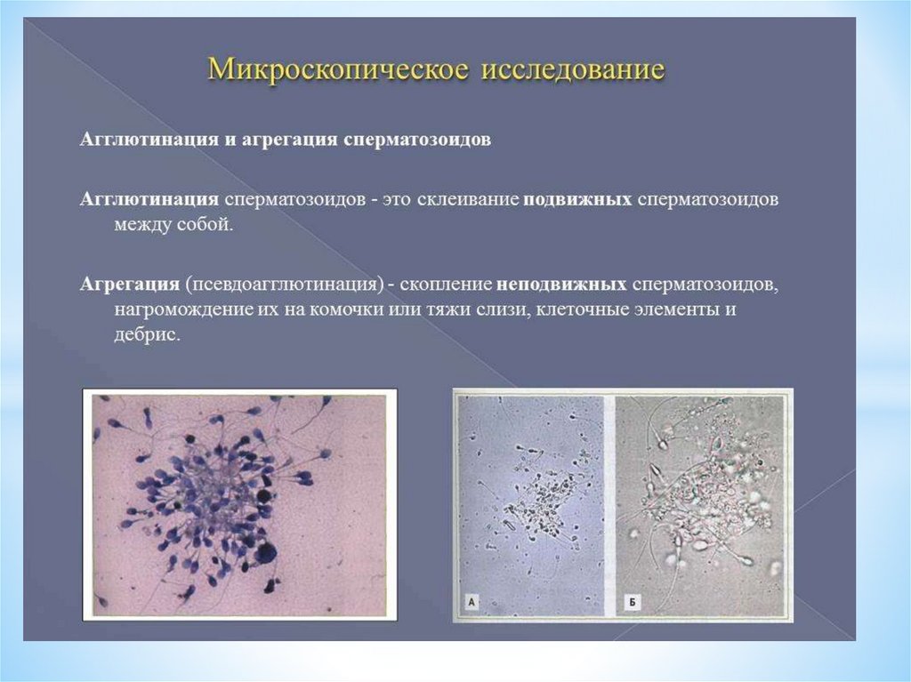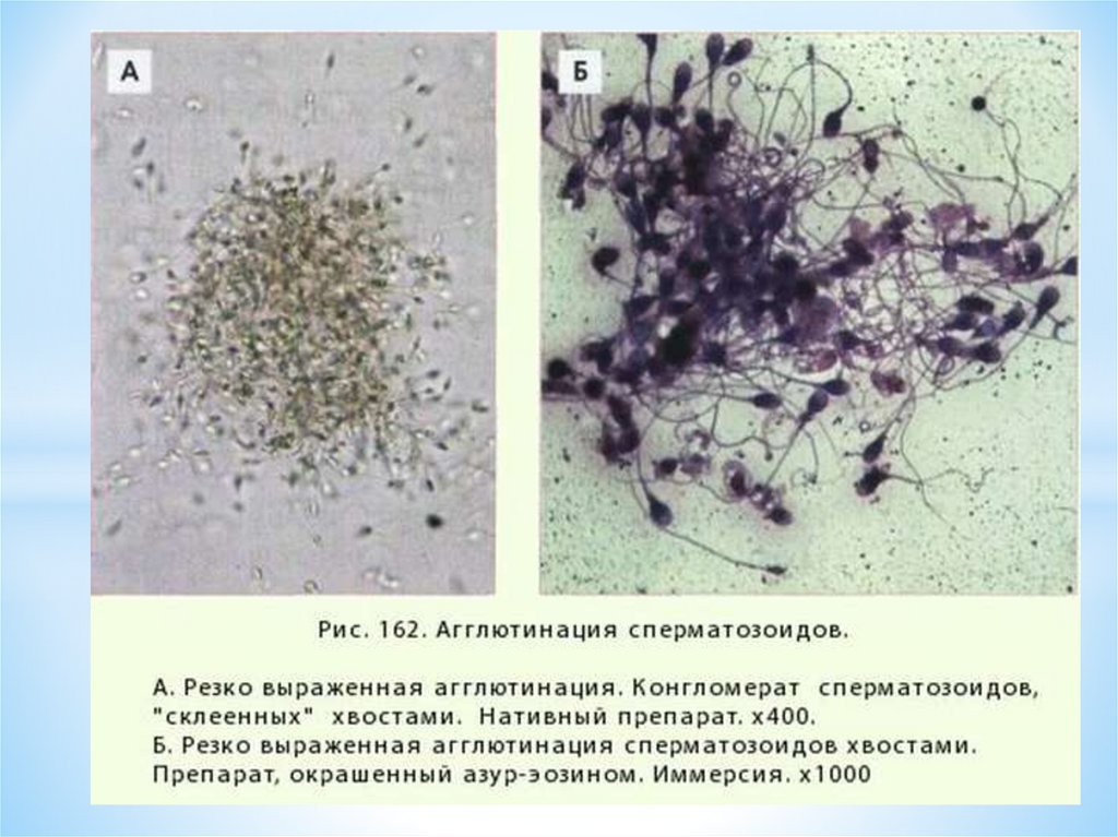 между жизнью и смертью спермиев надо считать явление АГГЛЮТИНАЦИИ, или склеивания спермиев.
